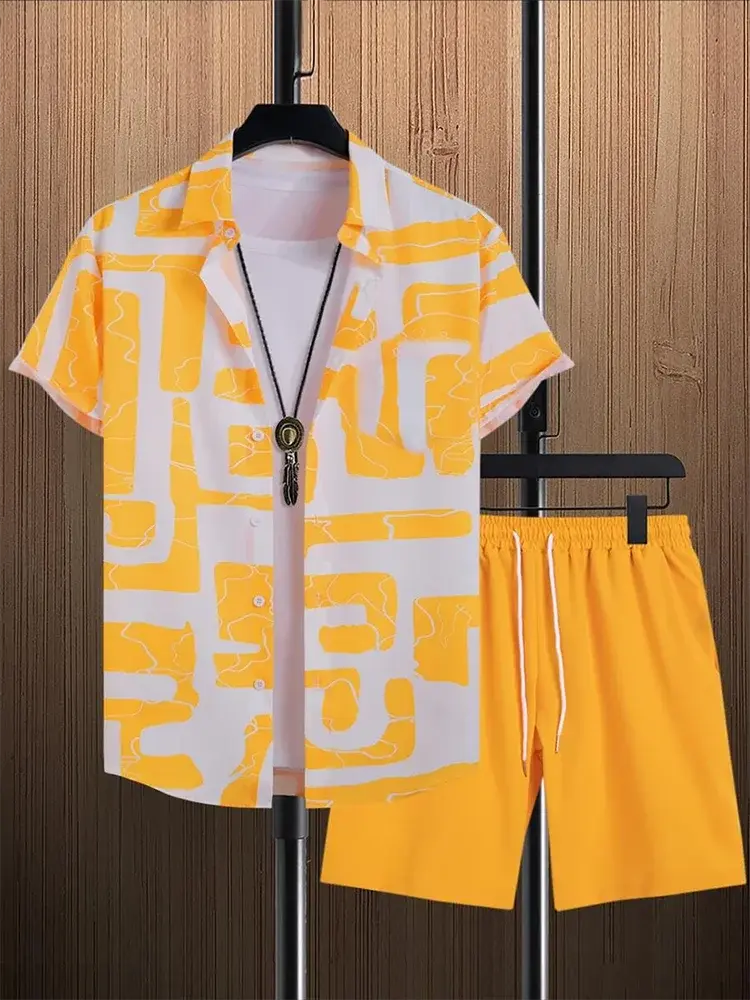 This luxury resort wear short-sleeved outfit for men is perfect for any casual summer occasion. Made with high-quality polyester,...