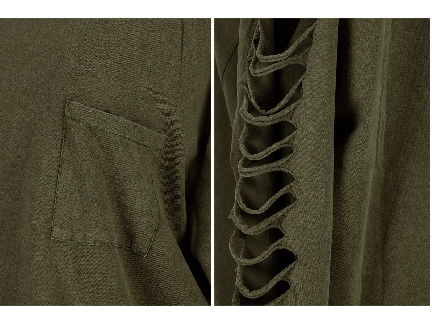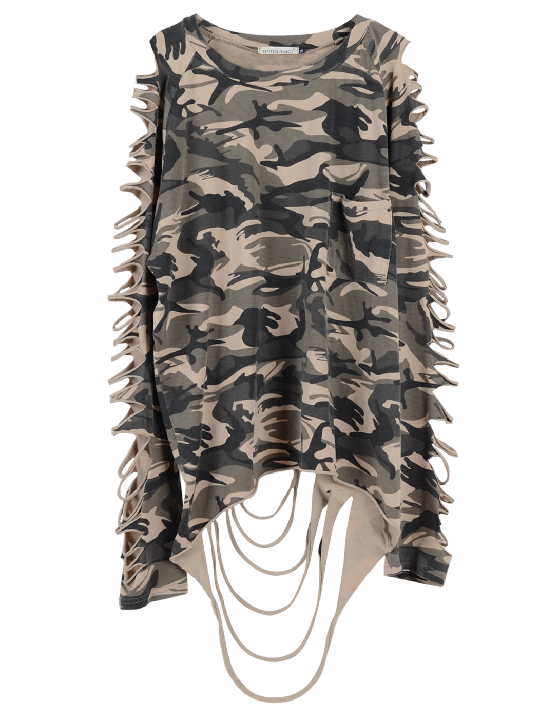 Caring for the Ripped Long-Sleeve Pullover Top is a breeze! This top is crafted from durable materials, so it holds up well after multiple washes. Just toss it in the washing machine, and you’re good to go. Because of its outstanding quality, you can enjoy this fashionable piece for a long time. It's an investment in your wardrobe that will pay off with endless styling options.